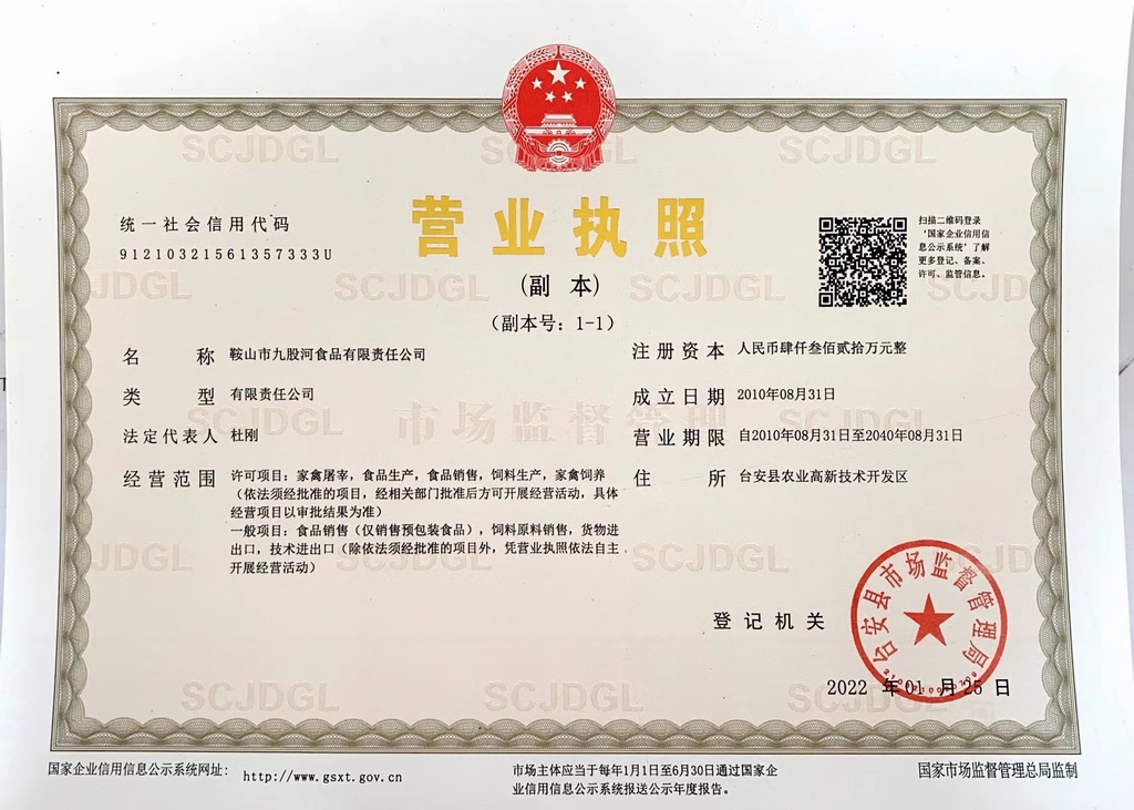 鞍山市九股河食品有限責任公司 九股河、食品